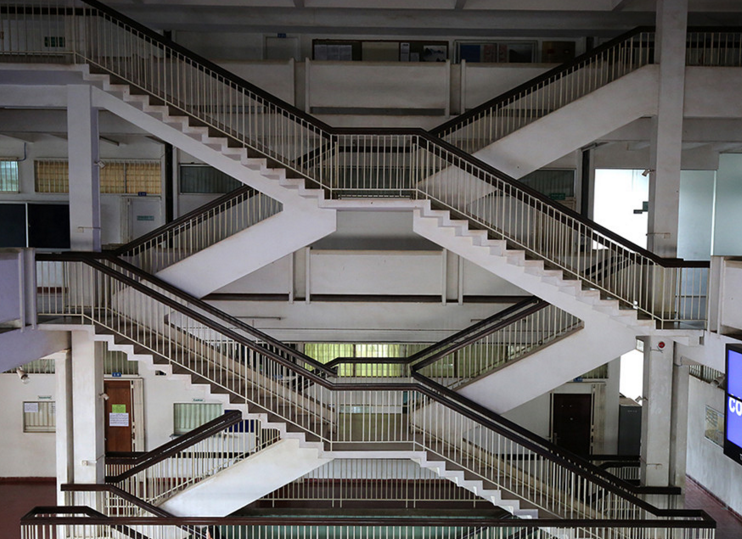 外語樓別具特色的設(shè)計(jì),能夠有效分流人群,防止擁堵和踩踏事件