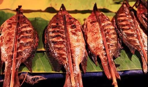 老撾多河流,自然產(chǎn)好魚,這里的魚個大柔嫩還鮮美多汁。當?shù)厝俗钕矚g將這種扁魚烤著吃。而且烤的方法很獨特,把魚內(nèi)臟去凈后塞上一把新鮮的檸檬草。不但去腥,還讓魚平添一份檸檬的清香。最地道的老撾烤魚吃法是用生的綠菜葉子包裹著涼米粉、生茄子和蘸著調(diào)料的魚肉包一個大包,一口吞到嘴里,非常鮮嫩爽口。