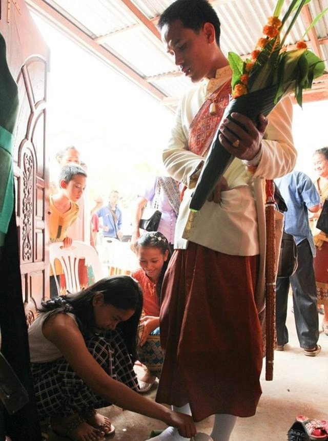 與中國不同,老撾流行倒插門,即男方主動到女方家里做上門女婿。婚禮也是由女方家操辦,這與老撾女性的社會地位日益提高息息相關(guān)。