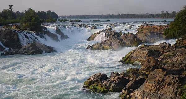 孔恩瀑布位于老撾占巴塞省湄公河段上,是老撾第一大名瀑孔恩瀑布總寬9.7公里,落差15~24米,年均流量1.2萬(wàn)立方米/秒,號(hào)稱世界上最寬的瀑布。