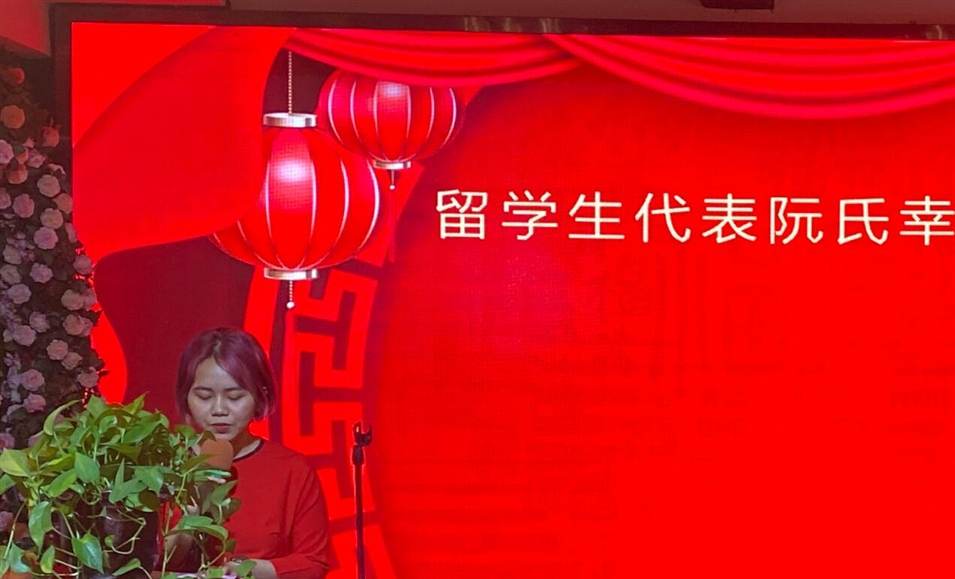 圖為留學(xué)生代表阮氏幸女士發(fā)言