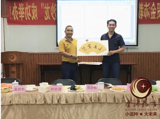 中華文化博大精深,在書法上的文化內(nèi)涵更是獨樹一幟,為加強(qiáng)中越兩國的文化交流,提高兩國間傳統(tǒng)文化的相互了解,金沛教育鳳嶺校區(qū)執(zhí)行董事、著名書法家岑亭儒給大家詳細(xì)講解了《中越文化之中國書法文化篇》,為中華傳統(tǒng)文化的發(fā)揚(yáng)也出了一份力,并代表金沛教育向越南代表贈送了寓意為中越友誼的書法作品。
