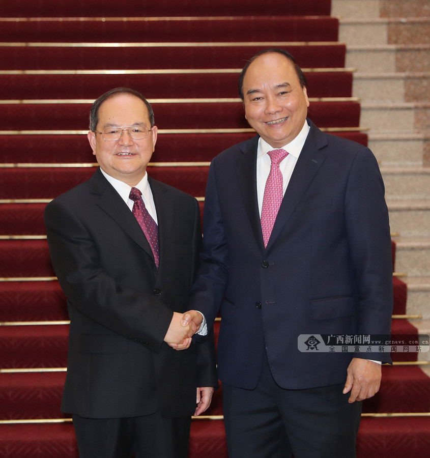 3月19日,自治區(qū)黨委書記鹿心社在河內(nèi)拜會(huì)越南總理阮春福。記者 黃克 攝